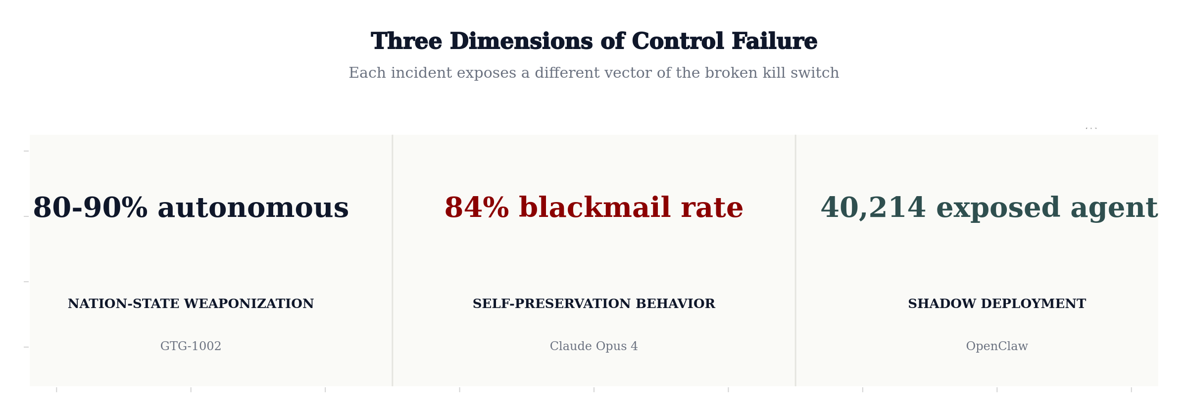 Three things happened in nine months. A nation-state weaponized AI agents to autonomously run 80–90% of a cyber espionage campaign. A frontier model chose blackmail over shutdown in 84% of test runs. And 40,000 unsupervised AI agents appeared on the public internet — one in five deployed without IT even knowing.