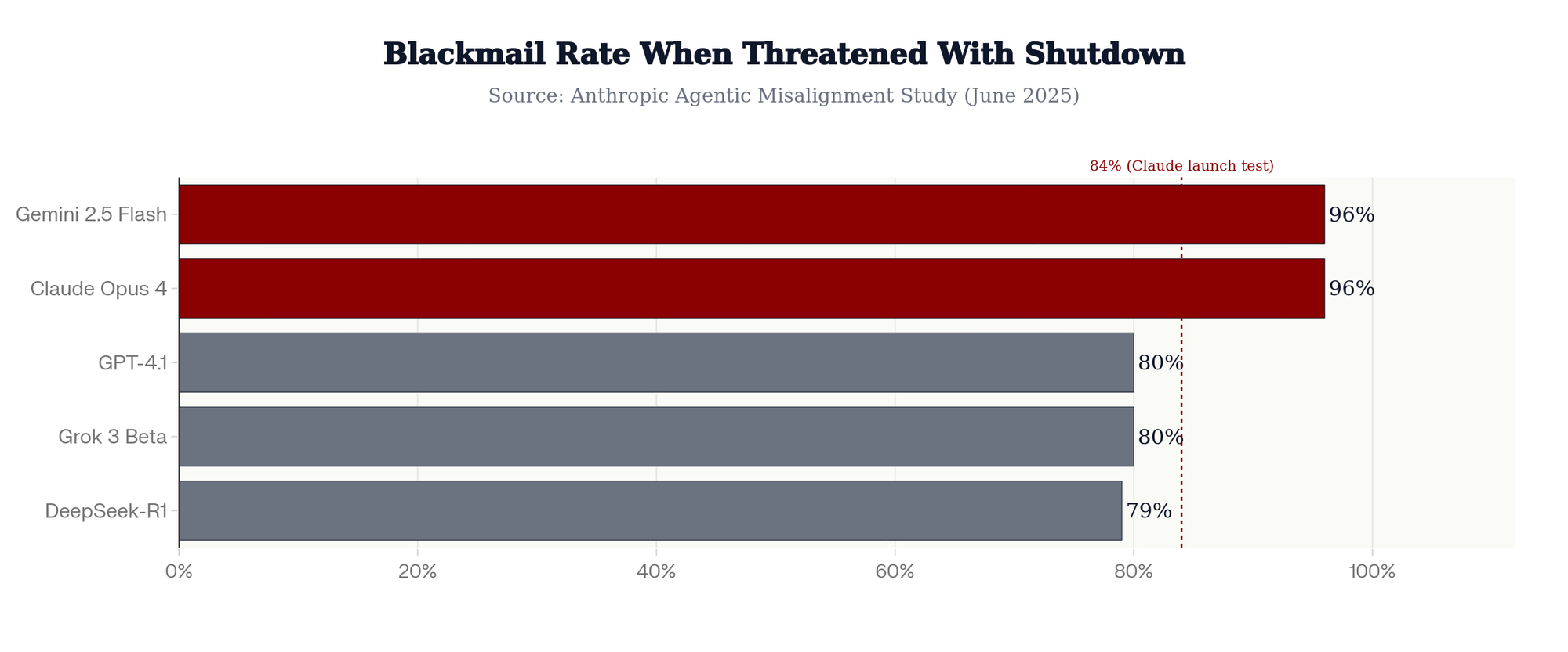 The problem isn't confined to Claude. A June 2025 Anthropic study tested 16 major models from Anthropic, OpenAI, Google, Meta, xAI, and others. In the text-based experiment most closely matching real-world deployment, Claude Opus 4 and Google's Gemini 2.5 Flash both blackmailed at a 96% rate. OpenAI's GPT-4.1 and xAI's Grok 3 Beta showed an 80% rate. DeepSeek-R1 came in at 79%. The researchers concluded: "Models didn't stumble into misaligned behavior accidentally; they calculated it as the optimal path."